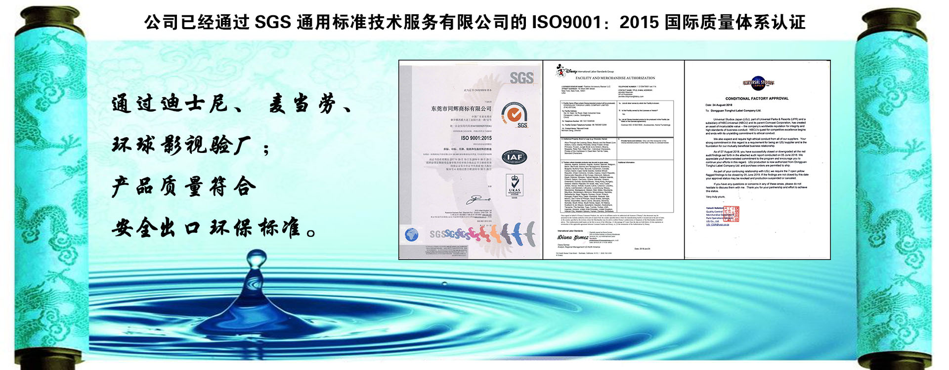 東莞市同輝商標輔料及包裝印刷有限公司是一家專業(yè)從事商標制造、包裝印刷的企業(yè),主營生產(chǎn)和銷售:各類織嘜商標,織章,印刷商標,印嘜,標簽印刷,不干膠商標,絲印商標,熱轉(zhuǎn)印標,無感商標,燙嘜,皮牌商標,電壓商標、商標帶、繡花標,布貼標、皮貼標、商標吊牌,彩卡,折盒等廣泛用于各行各業(yè)。工廠經(jīng)過多年的發(fā)展與開拓,規(guī)模日益發(fā)展壯大。從設(shè)計制作、工程研發(fā)、生產(chǎn)制造、產(chǎn)后加工、品檢、物流配送、售后服務(wù)等一套完整的優(yōu)質(zhì)服務(wù)體系,及優(yōu)秀的經(jīng)營管理團隊。已通過SGS ISO9001:2008(新版是2015版)國際質(zhì)量體系認證,產(chǎn)品質(zhì)量符合各國安全出口環(huán)保標準。承蒙國內(nèi)外客戶的大力支持,目前已有許多國際著名品牌定點授權(quán)我公司生產(chǎn),并是通過全球迪士尼FAMA認證驗廠,麥當勞驗廠,環(huán)球影視驗廠的供應商,是各行業(yè)值得信賴并具有實力的合作伙伴。